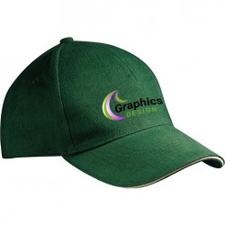 65% polyester / 35% coton. 5 panneaux avec panneau frontal sans couture. Panneau avant rigide. Visière pré-courbée avec 6 lignes de couture. courbée avec 6 coutures.